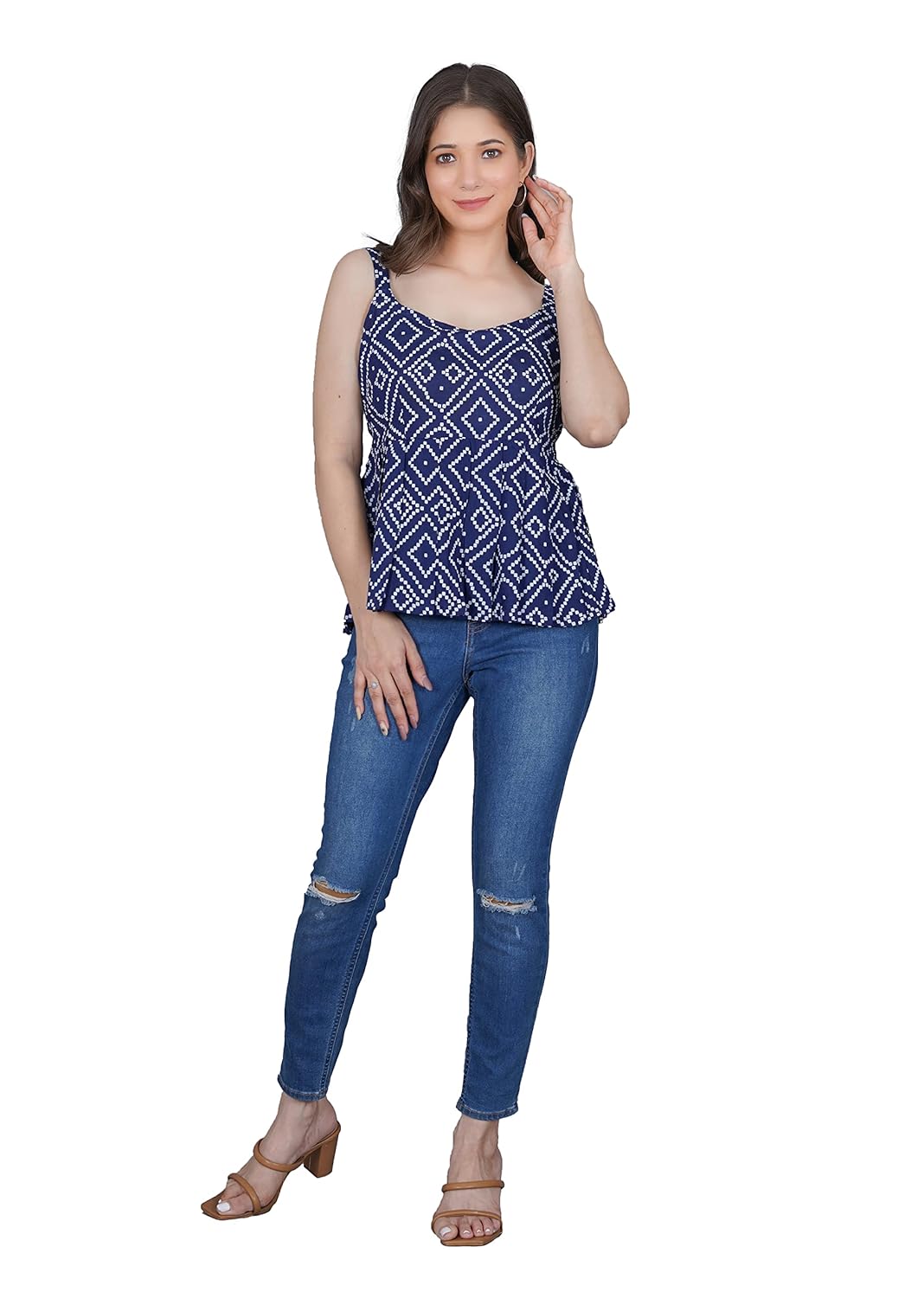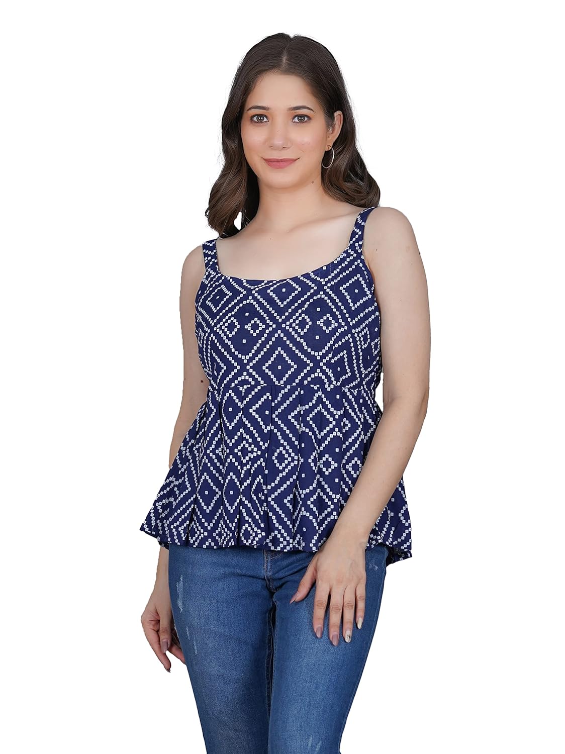 Madnoo Women’s Casual Printed Sleeveless Peplum Top | Tops for Women